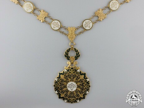 The Amid Collar is worn by the Chancellor of the People's Democratic Republic of Algeria. It is composed of alternating gold and enamelled links. The inscription on the enamelled links translates to "Allah, Algeria."