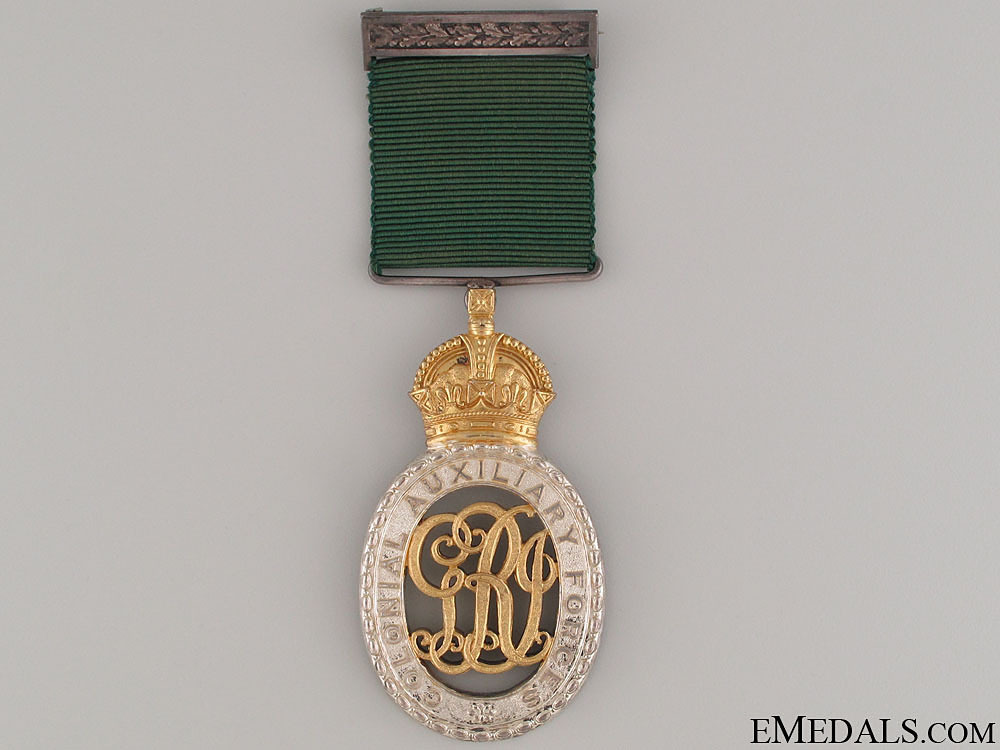 This medal was conferred upon Auxiliary Officers of the Colonial Auxiliary Forces for 20 years of commissioned service.