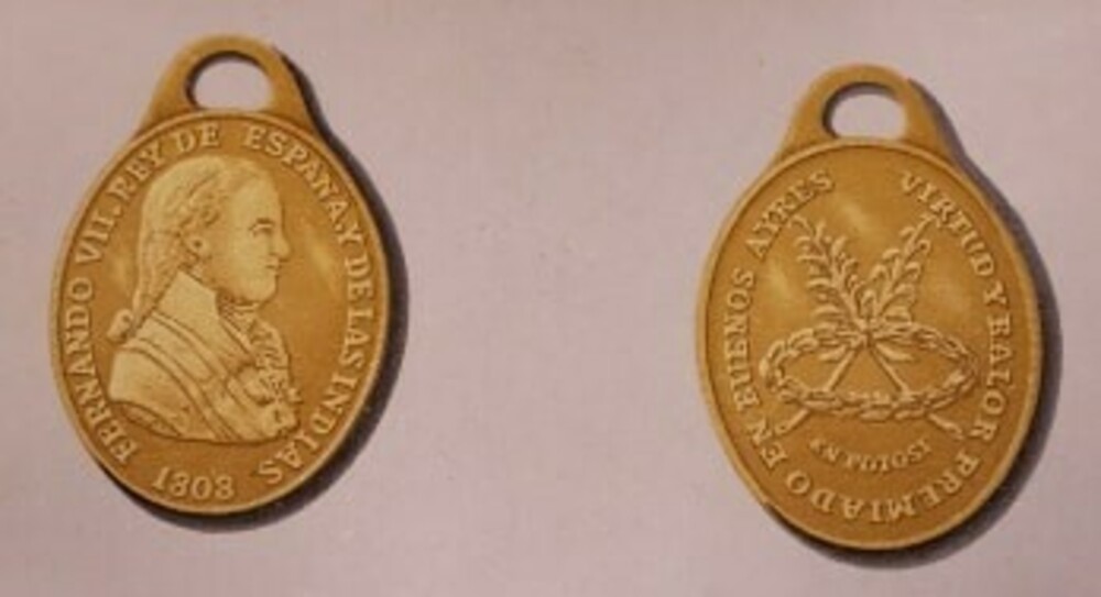 The Medal features an obverse inscription that can be translated to "Ferdinand VII King of Spain and Las Indias 1808" and a reverse inscription that can be translated to “Virtue and Courage in Buenos Aires, in Potosí.”