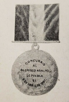 The Medal for Tlaxcala (Medalla de Tlaxcala) was established by the state of Tlaxcala in recognition of the military personnel who participated at the Third Battle for Puebla on April 2, 1867, a key victory of the Mexican army during the Second French Intervention (1862-1867).