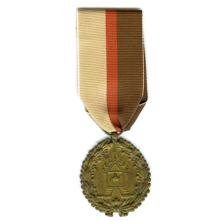 This medal was conferred upon individuals for contributions, monetary or service related, to the construction of State residences and palaces. It may also have been awarded for the construction of temples and schools.