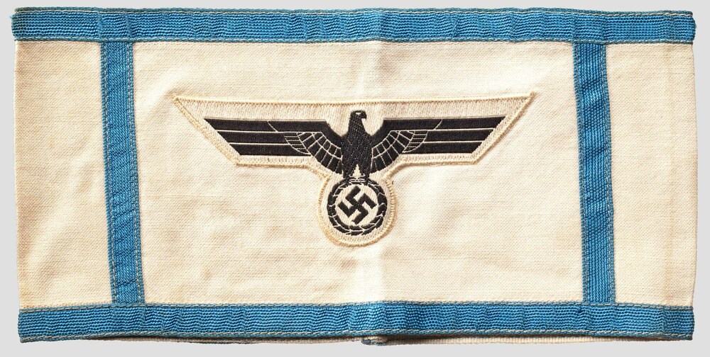 A Deputy Air Defense Leader of the Army (Stellvertreter des Luftschutzleiters des Heeres) wore a white armband with a black national eagle framed by a light blue vertical stripe on each side, with a light blue top and bottom stripe. This armband was introduced on August 15, 1942.