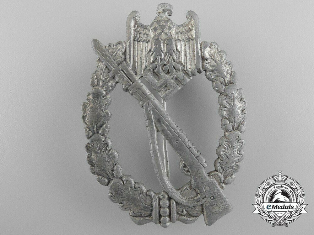 The Silver Badge was awarded to men of infantry and mountain troop regiments. In special cases, this included ground combat units of the Luftwaffe and Kriegsmarine. Members of the Waffen-SS and police forces were also eligible if they met the prerequisites. It was first awarded in late May of 1940. The Bronze Badge was awarded to men of motorized regiments and was first awarded in early June of 1940.