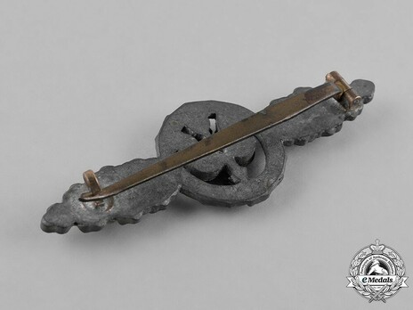 The clasps were either die-struck or die-cast. Early specimens were made of tombac, an alloy with a high copper content. As the war progressed, copper, which had to be imported to Germany, wasn’t as readily available anymore, which led to production being switched over to using zinc. Zinc was of lower quality, but cheap and abundant.